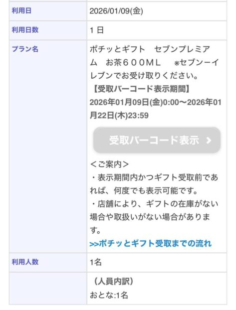- おまけでセブンイレブンのお茶やお菓子がもらえる