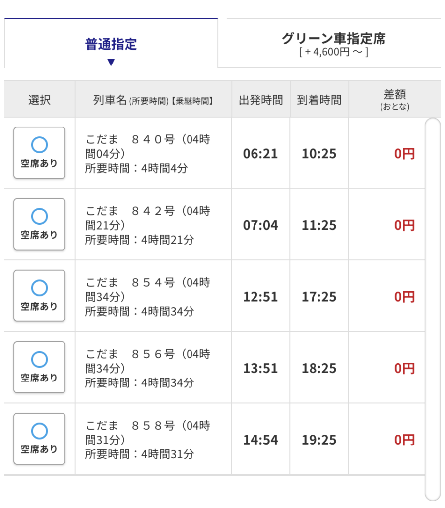 「こだま」だけではなく、「ひかり」も選べるんです!