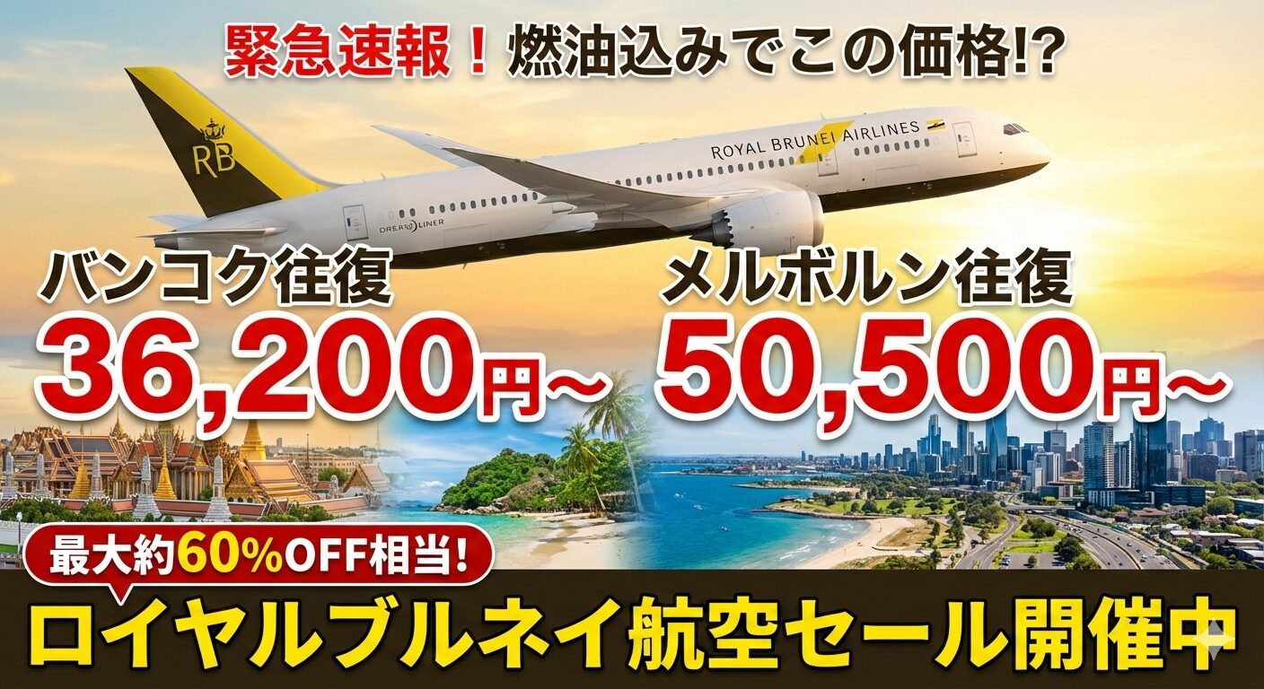 今回のロイヤルブルネイ航空のセールは、「燃油サーチャージなし」と「最大約50〜60%オフ相当の価格破壊」が重なった、2026年序盤のベスト・ディールの一つと言えます。