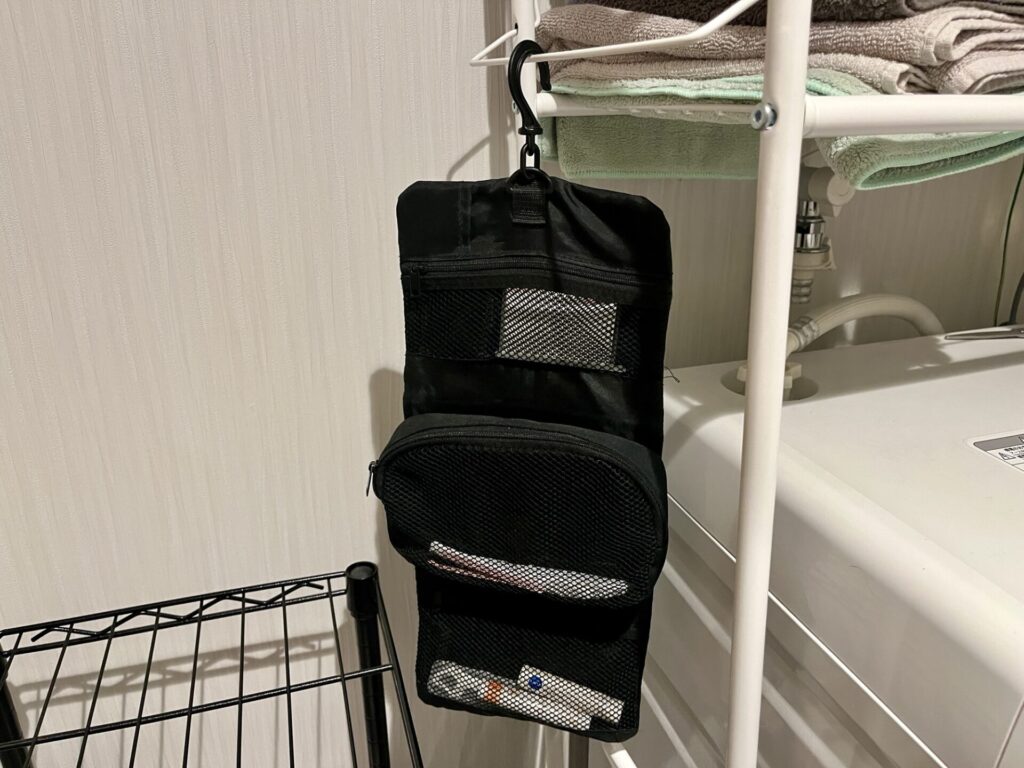 普段は洗面所にかけて、旅に行くときはいつも使っているものをまとめて持っていきます。